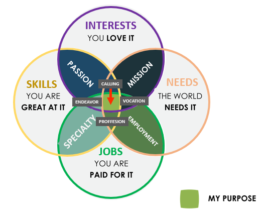 My Takeaway for eveyone, best line: "An authentic business is the intersection between the world's hunger and your talents and your passions." Here is the graphic I use for my clients, but exactly what George is teaching, find the intersection of your skills, your interests, the worlds needs, then use that calling he describes to deliver an authentic business offer that resonates with your tribe and fulfills your business purpose.